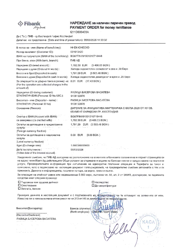 Училищната общност изказва благодарност на майката на Яна Стоянова от 4 б клас за оказаното съдействие!