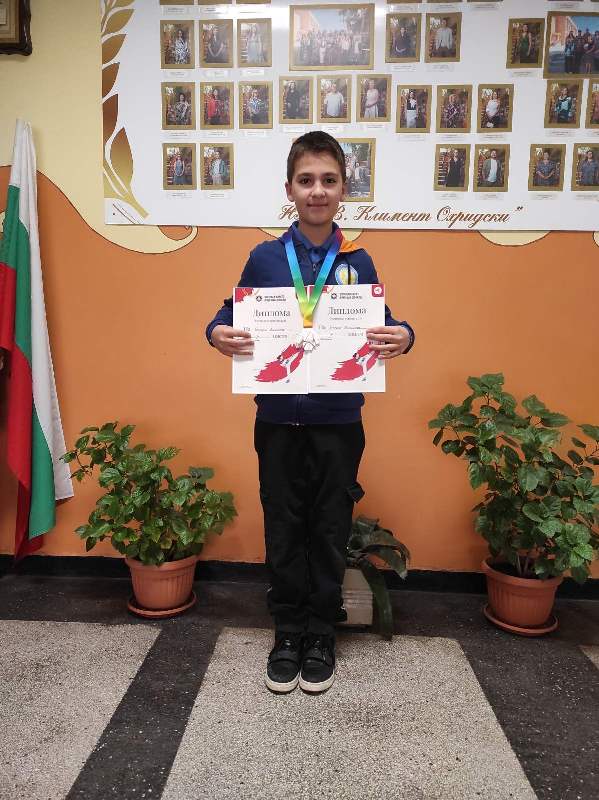 Светли Светлозар Христов от II а клас завоюва трето място, бронзов медал и грамота