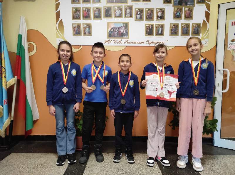 Емилиян Димитров от II а клас, Даниел Христов от II б клас, Катрин Моралийска от III а клас, Рая Любенова от III в клас и Адриана Стоянова от IV б клас